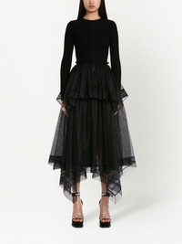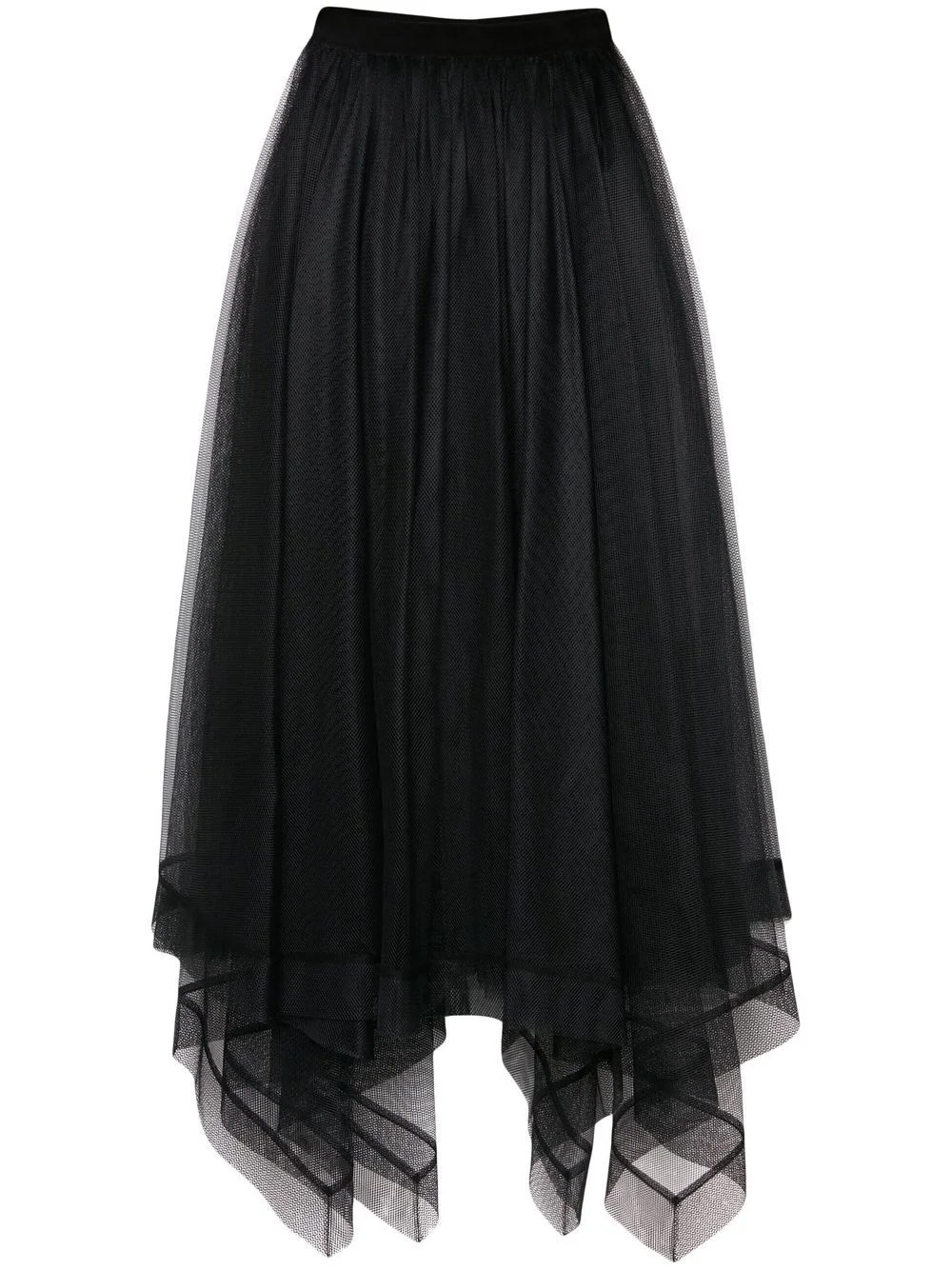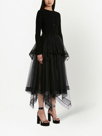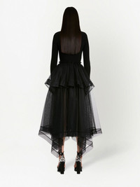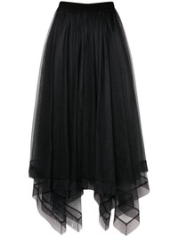 asymmetric-design tiered-skirt Highlights - Black - Asymmetric design - Tulle overlay - Tiered skirt - High-waisted - Full skirt - Mid-length Made in Italy Composition Outer: Polyamide 100% SIZE & FIT Measurement HIPS 40.15 in(102 cm) WAIST 28.74 in(73 cm)