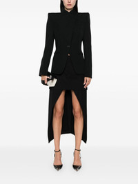 asymmetric skirt Highlights - Black - Wool - Twill weave - Asymmetric design - Concealed front button, hook and zip fastening - Two side inset pockets - Layered effect - Rear jetted pocket Made In Italy Composition Lining: Acetate 74%, Silk 26% Outer: Wool 100% SIZE & FIT Model measurements Height 5 ft 10 in(1.78 m) Bust/Chest 33.46 in(85 cm) Hips 36.22 in(92 cm) Waist 23.22 in(59 cm) FittingInformation Designed with an asymmetric hem, this skirt is intended to be worn just below the waist Made from a midweight non-stretch fabric, this piece offers minimal elasticity when worn