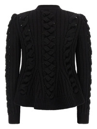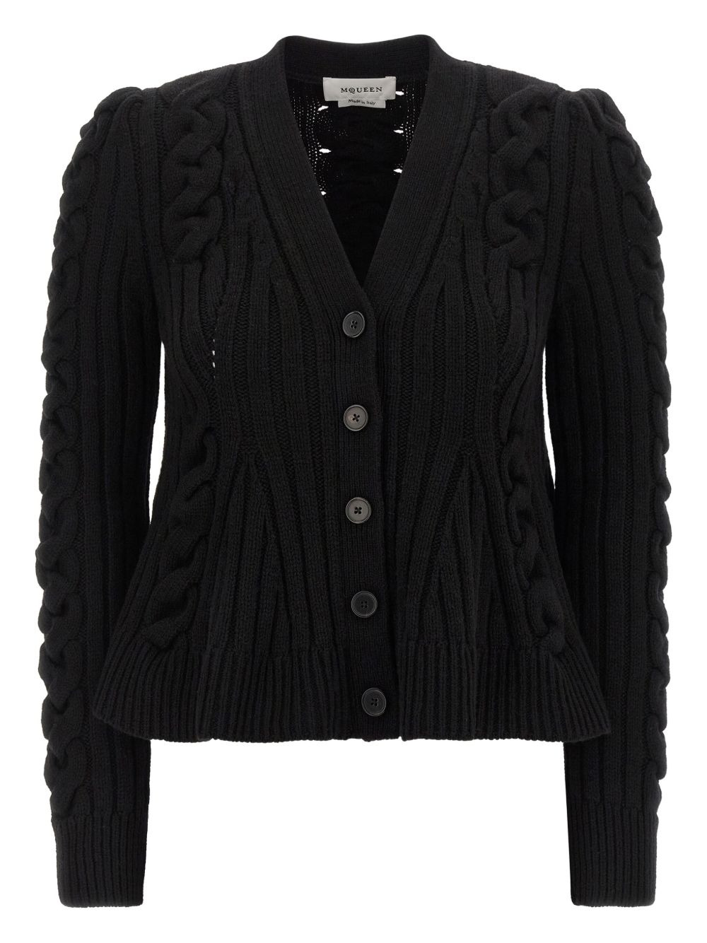 braided-knit cardigan Highlights - Black - Braided knit - V-neck - Front button closure - Long sleeves cuffs Made in Italy Composition Wool 90%, Cashmere 10% Washing instructions Read Manufacturer Guidelines