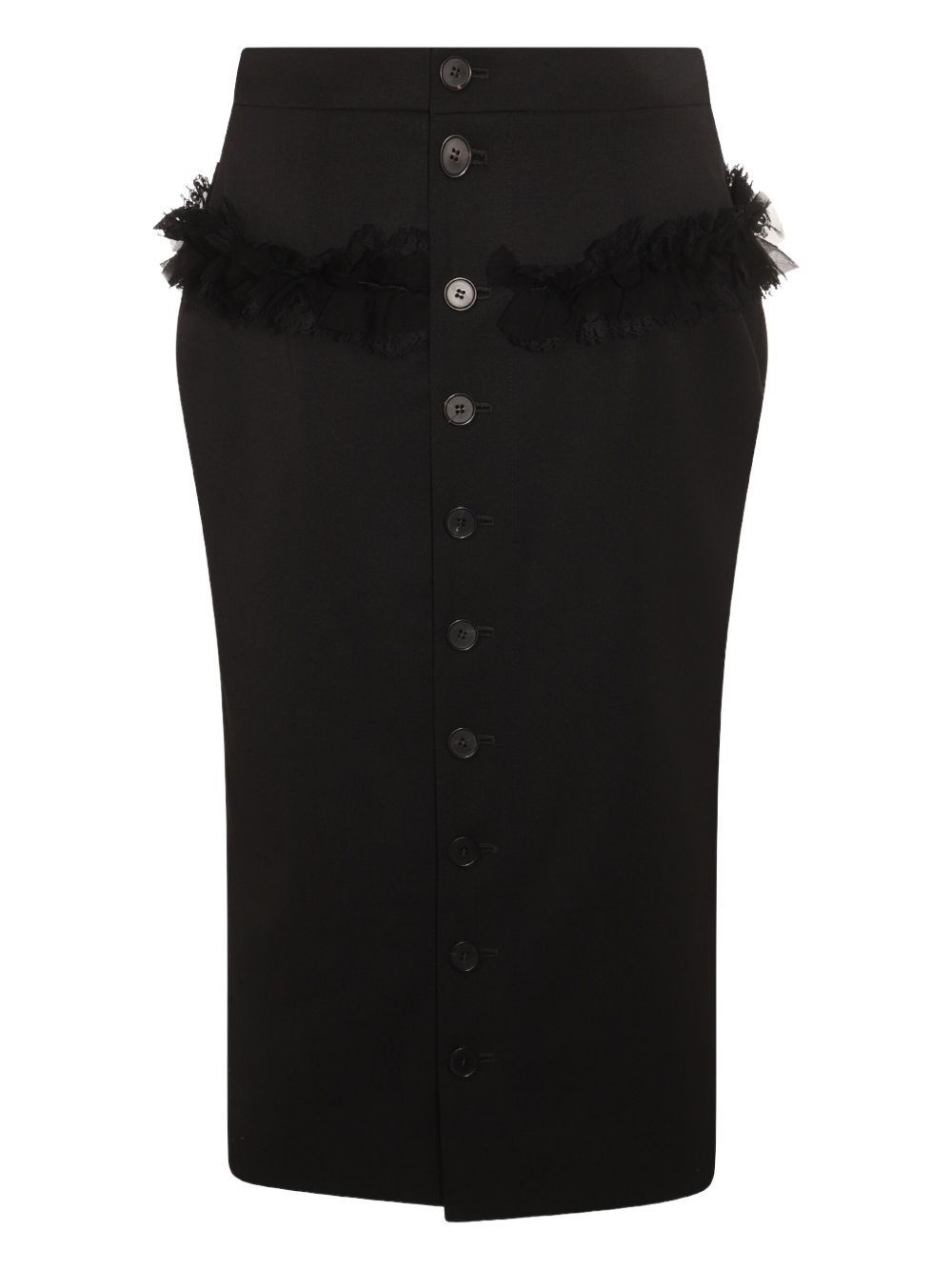 button-front ruffled skirt Highlights - Black - Ruffled trim - Button fastening - Wool composition - High-waisted skirt - Mid-length Made In Italy Composition Wool 100%