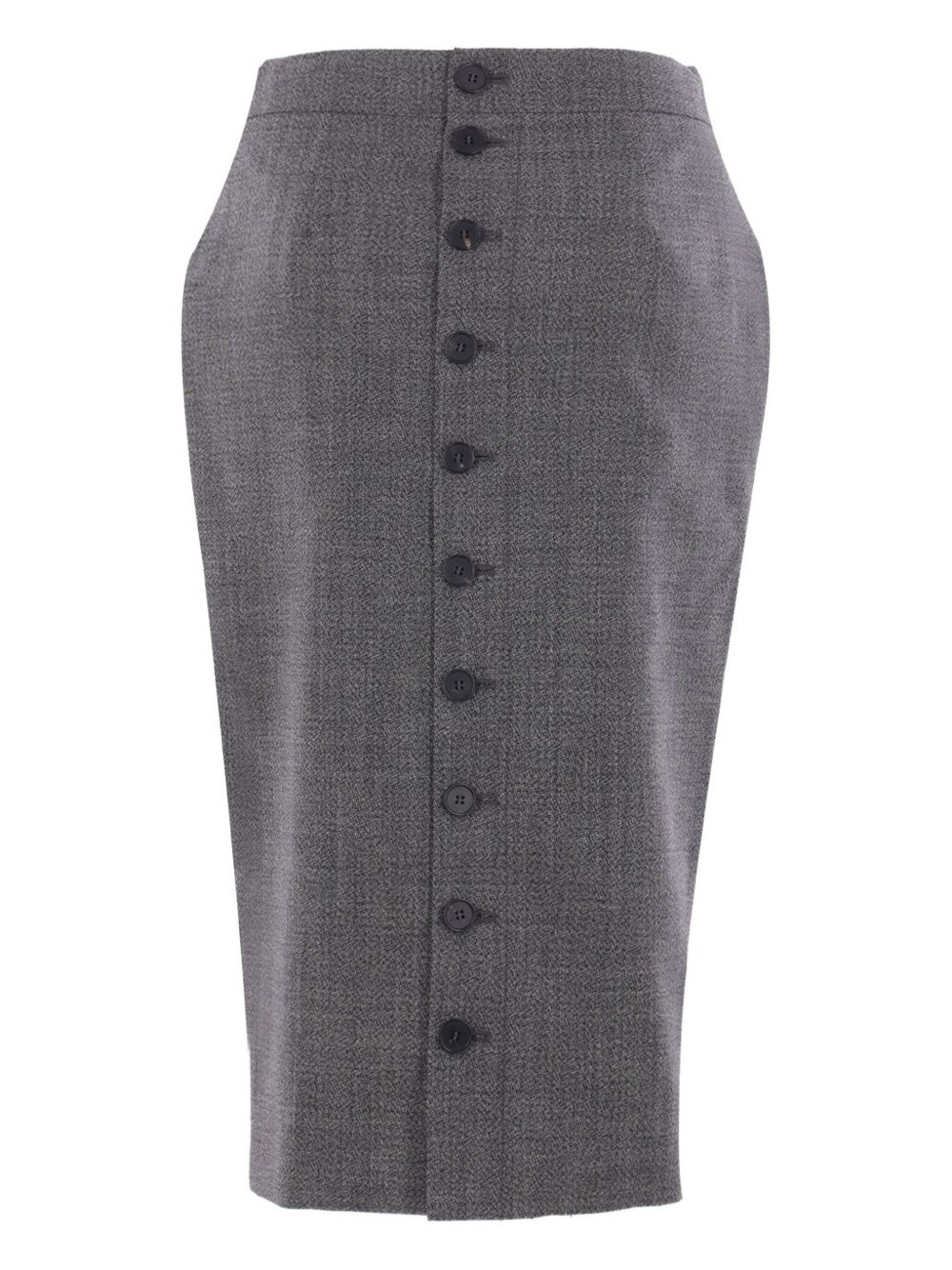 button-front wool skirt Highlights - Grey - Wool fabric - Button fastening - Straight hem - Fitted silhouette - Textured weave Made in Italy Composition Wool 100% Washing instructions Dry Clean Only