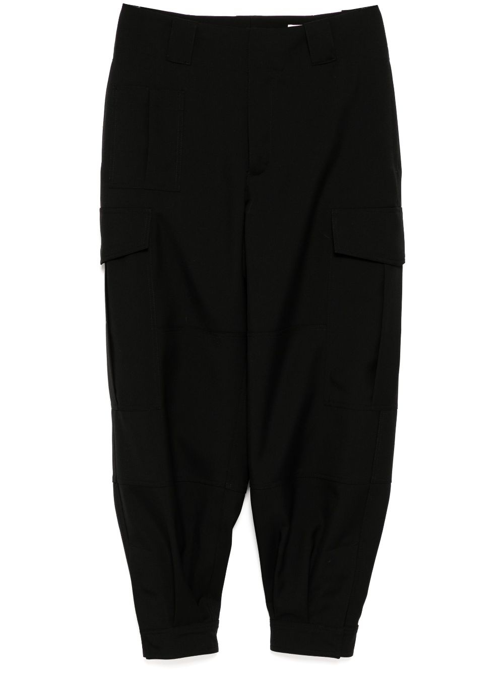 cargo trousers Highlights - Black - Elasticated waistband - Two side slit pockets - Two side cargo pockets - Tapered leg Made in Italy Composition Outer: Wool 100% Lining: Cotton 100% SIZE & FIT Model measurements Height 6 ft 2 in(1.88 m) Bust/Chest 34.25 in(87 cm) Hips 34.64 in(88 cm) Waist 26.77 in(68 cm)