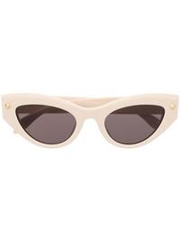 cat-eye frame sunglasses white grey tinted lenses cat-eye frame straight arms curved tips UV-protective lenses These glasses come with a protective case. Made in Italy Composition Acetate 100% SIZE & FIT Measurement Arm Length 5.51 in(14 cm) Bridge Width 0.86 in(2.2 cm) Lens Diameter 2.04 in(5.2 cm) Total Width 5.78 in(14.7 cm)