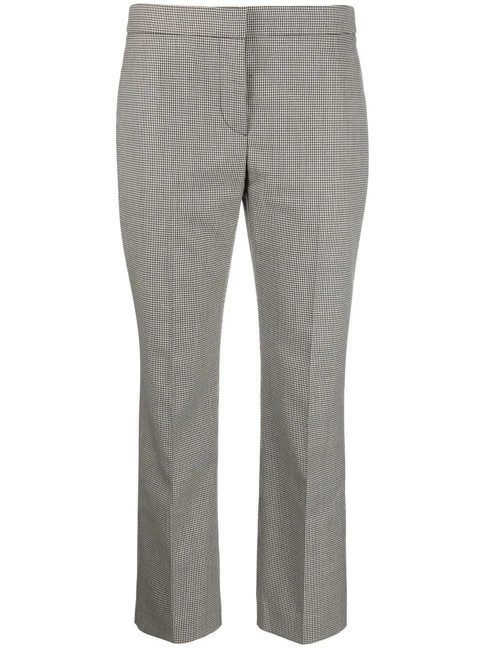 checked cropped slim-fit trousers The classic and the bold meet halfway in these Alexander McQueen trousers. Enhanced by a checked pattern, the tailored design contrasts the cropped leg for a disruptive aesthetic. Made in Italy Composition Lining: Cupro 100% Outer: Wool 100% SIZE & FIT Model measurements Height 5 ft 11 in(1.8 m) Bust/Chest 31.49 in(80 cm) Hips 36.61 in(93 cm) Waist 24.4 in(62 cm) FittingInformation This piece fits true to size. We recommend you get your regular size Cut for a slim fit Made with a mid-weight non-stretch fabric Washing instructions Dry Clean Only