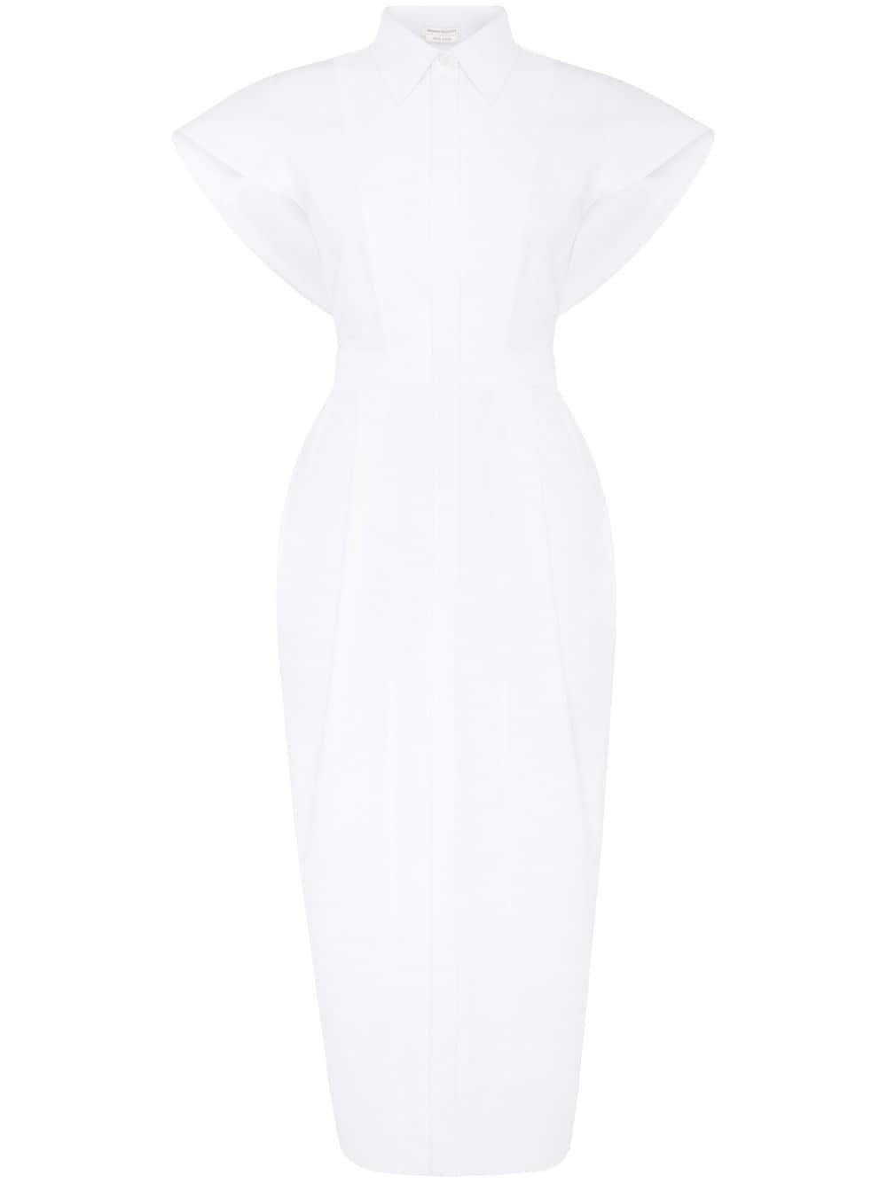 collared short-sleeved midi dress cloud white cotton classic collar front button fastening short sleeves mid-length Made in Italy Composition Outer: Cotton 100% Lining: Cotton 100%