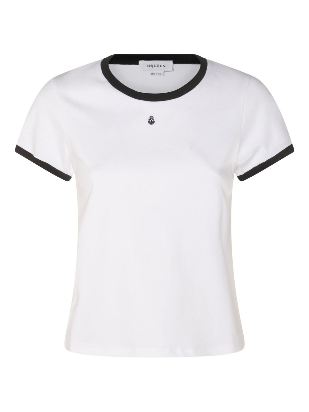 contrast-trim t-shirt Highlights - White - Contrast black neckline and sleeves - Embroidered logo detail - Short sleeves - Crew neck Made in Italy Composition Cotton 100%