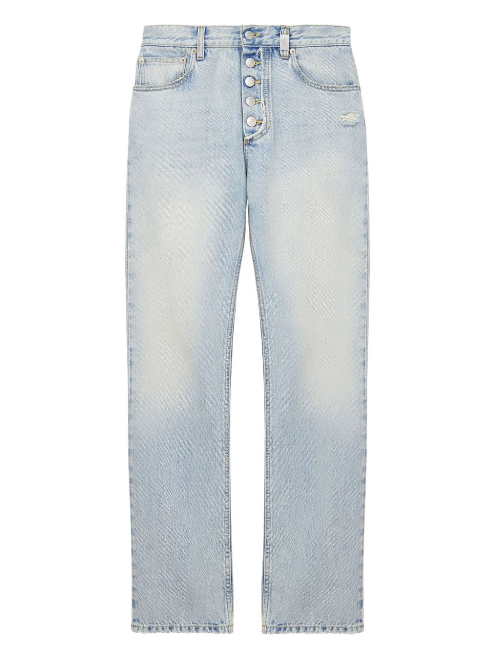 cotton jeans Highlights - Light blue - Front button fastening - Classic five pockets - Belt loops - Ripped detailing Made in Italy Composition Cotton 100%