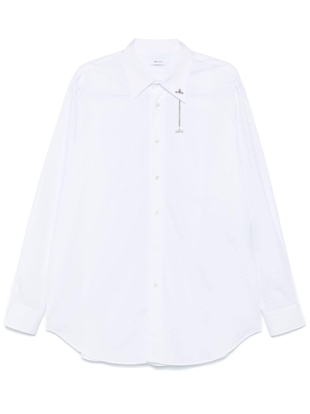 cross-bar chain shirt Highlights - White - Organic cotton - Poplin texture - Cross-bar chain detail - Front button fastening - Classic collar - Drop shoulder - Long sleeves - Buttoned cuffs - Curved hem Imported Composition Organic Cotton 100% SIZE & FIT FittingInformation Designed to be unstructured, offering a loose fit throughout Made from a midweight non-stretch fabric