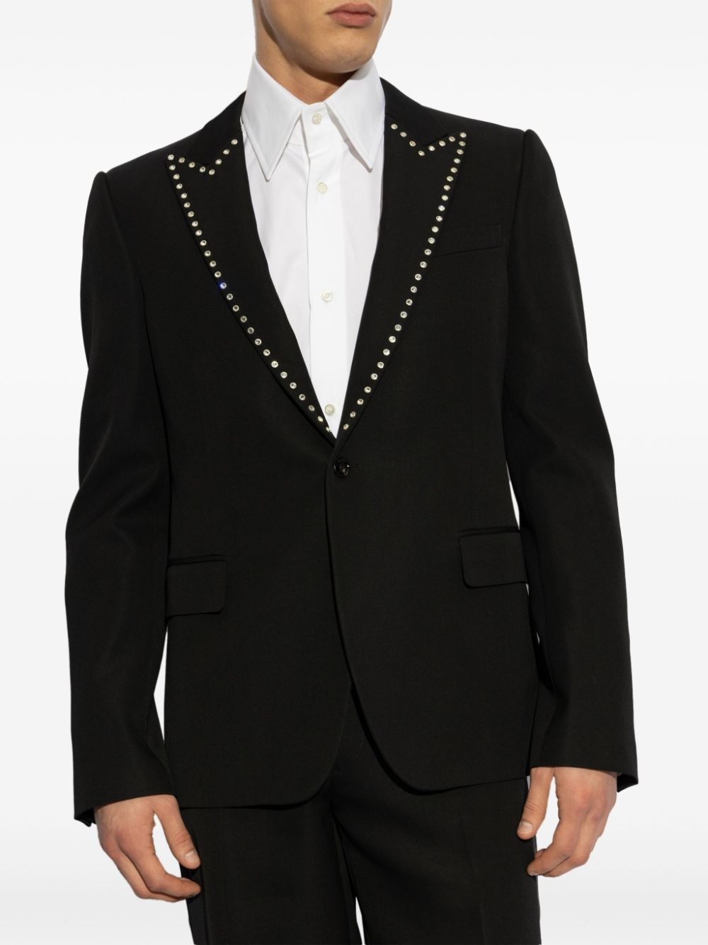 crystal-embellished blazer Highlights - Black - Front button fastening - Two side flap pockets - Buttoned cuffs - Chest welt pocket Made in Italy Composition Wool 100%