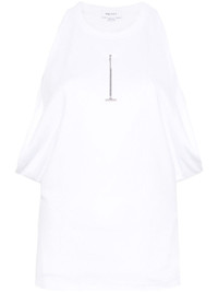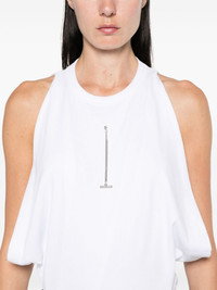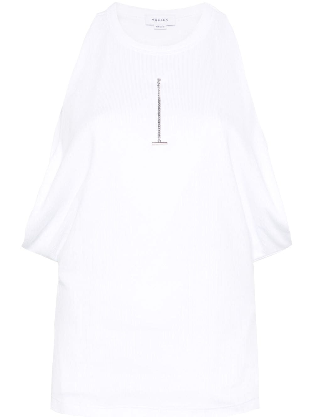 Draped Armhole T-shirt Highlights - White - Cotton blend - Fine ribbed - Crew neck - Chain-link detailing - Drop armholes - Sleeveless - Straight hem Made In Italy Composition Polyester 100%, Cotton 97%, Elastane 3% SIZE & FIT Model measurements Height 5 ft 10 in(1.78 m) Bust/Chest 33.85 in(86 cm) Hips 36.61 in(93 cm) Waist 26.77 in(68 cm) FittingInformation Designed for a slim fit that sits just away from the body offering a close yet comfortable fit Made from a midweight stretch fabric, this piece offers elasticity and flexibility when worn
