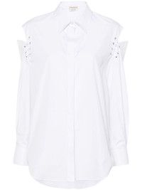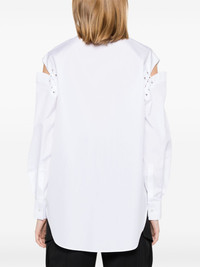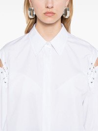 cut-out detail cotton shirt Highlights - Optical white - Cotton - Poplin texture - Cut-out detailing - Lace-up detailing - Straight-point collar - Long sleeves - Buttoned cuffs - Curved hem - Front button fastening Made in Italy Composition Cotton 100% SIZE & FIT Model measurements Height 5 ft 9 in(1.75 m) Bust/Chest 31.88 in(81 cm) Hips 34.64 in(88 cm) Waist 24.01 in(61 cm) FittingInformation Designed to be unstructured, offering a loose fit throughout Made from a midweight non-stretch fabric This piece fits true to size – take your usual size