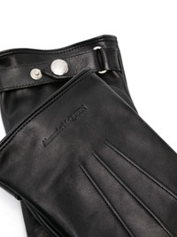 debossed-logo leather gloves Highlights - Core black - Calf leather - Debossed logo to the front - Full-finger design - Stud fastening - Adjustable fit Made in Italy Composition Outer: Calf Leather 100% Lining: Cashmere 100% Washing instructions Specialist Cleaning