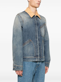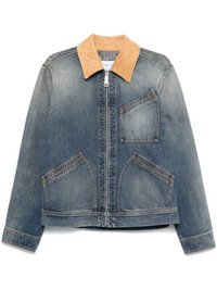 denim jacket Highlights - Indigo blue - Front zip fastening - Buttoned cuffs - Four front patch pockets - Contrasting collar Made in Italy Composition Cotton 100%, Calf Leather 100% SIZE & FIT Model measurements Height 6 ft 1 in(1.85 m) Bust/Chest 35.82 in(91 cm) Hips 37.79 in(96 cm) Waist 29.13 in(74 cm) FittingInformation Designed for a regular fit, allowing for a comfortably loose fit throughout the body Sturdy and hard-wearing, this denim piece offers no stretch