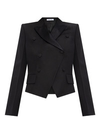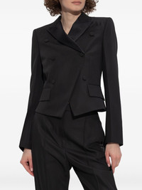 double-breasted blazer Highlights - Black - Peaked lapels - Button fastening - Side flap pockets - Structured shoulders - Long sleeves Made in Italy Composition Wool 100% Washing instructions Read Manufacturer Guidelines