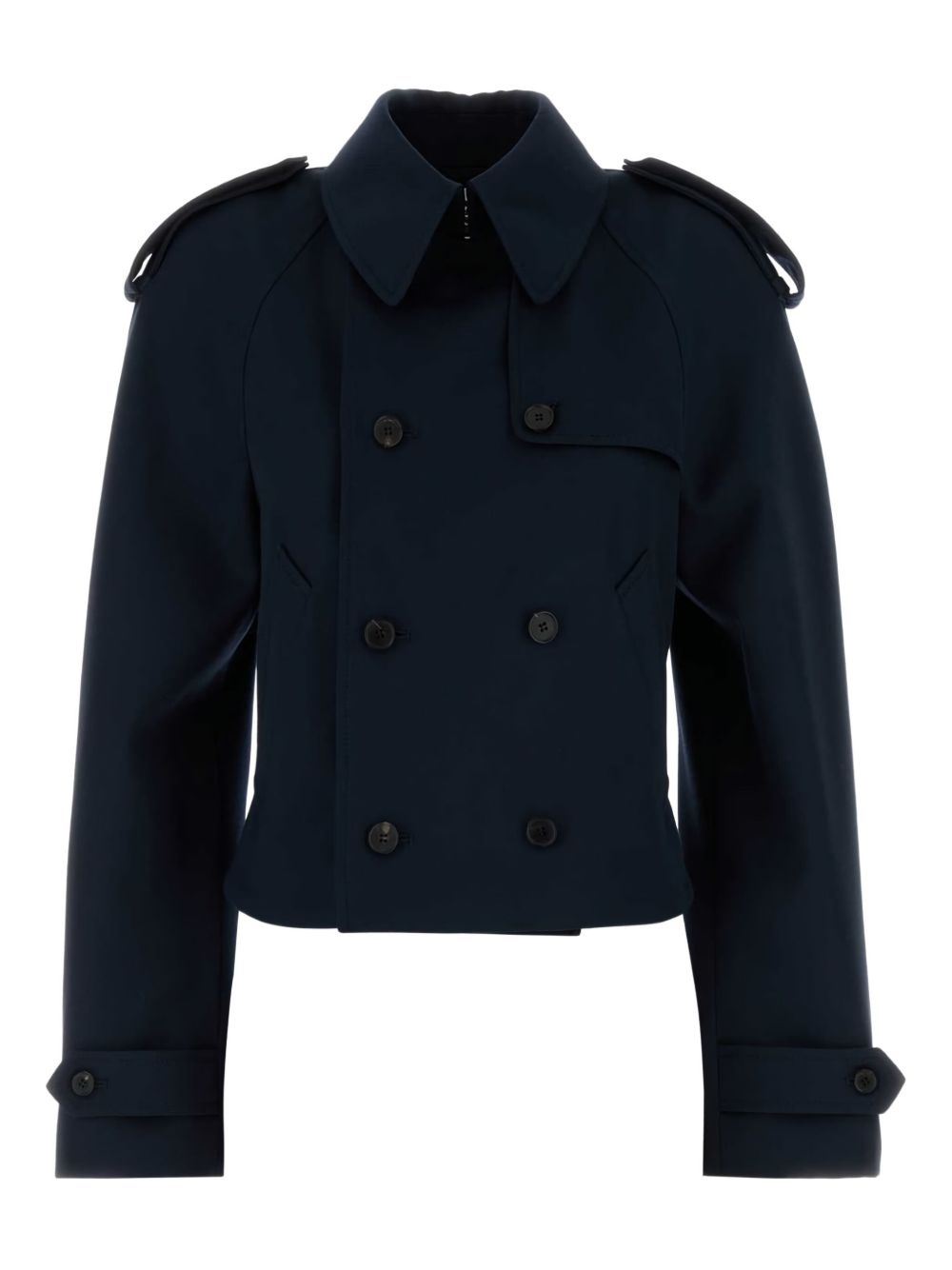 double-breasted wool jacket Highlights - Midnight blue - Wool fabric - Double-breasted closure - Epaulettes - Long sleeves - Buttoned cuffs Made in Italy Composition Wool 100%
