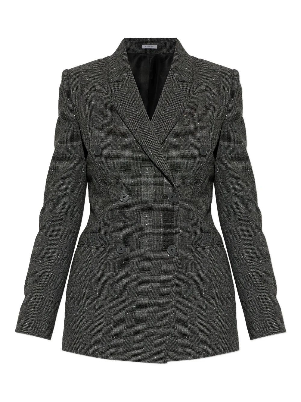 double-breasted wool jacket Highlights - Dark grey - Double-breasted - Check pattern - Peaked lapels - Front button fastening - Long sleeves Made in Italy Composition Wool 100% Washing instructions Read Manufacturer Guidelines