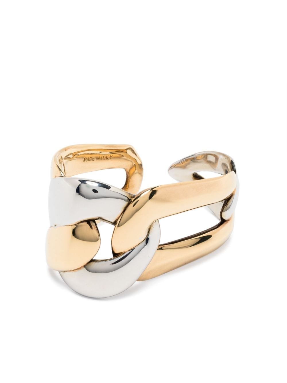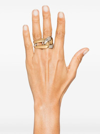 Double Chain ring Highlights - Gold-tone/silver-tone - Polished finish - Interlock design - Open back Made in Italy SIZE & FIT Model measurements Height 5 ft 10 in(1.78 m) Bust/Chest 33.07 in(84 cm) Hips 36.61 in(93 cm) Waist 24.8 in(63 cm) Measurement Band Width 0.94 in(2.4 cm) CIRCUMFERENCE 2.75 in(7 cm)