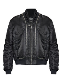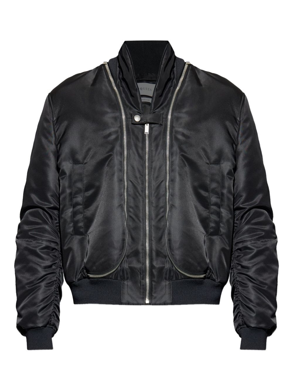 double-zip bomber jacket Highlights - Black - Satin finish - Baseball collar - Zip fastening - Side pockets - Long ruched sleeves - Ribbed trim Made in Italy Composition Polyamide 100%