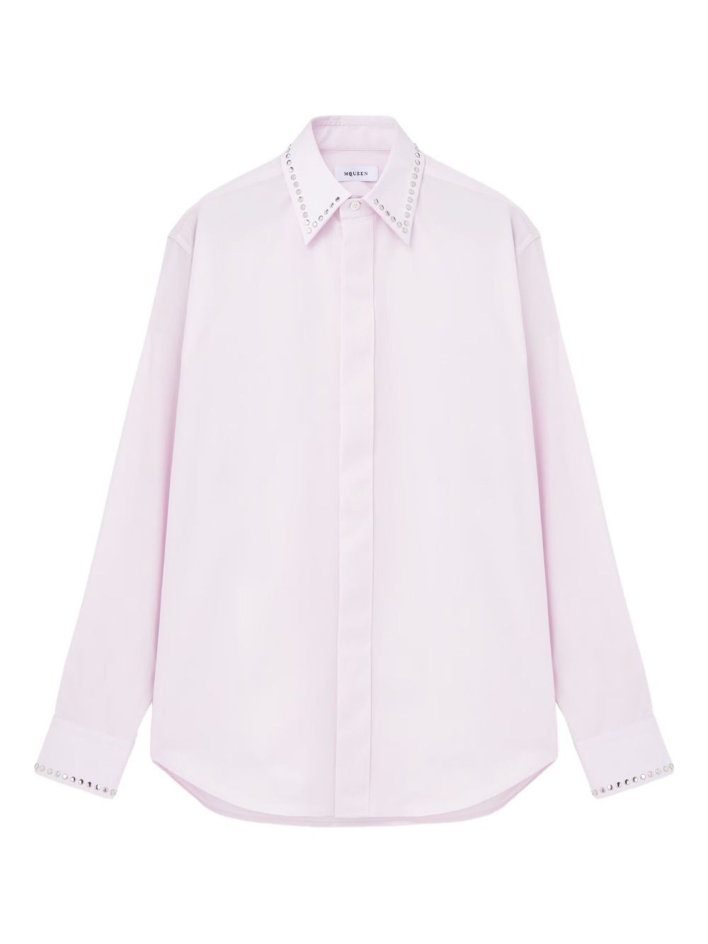 embellished-collar cotton shirt Highlights - Pink - Cotton material - Stud embellishment collar - Stud embellishment cuffs - Long sleeves - Button fastening Imported Composition Cotton 100% Washing instructions Read Manufacturer Guidelines