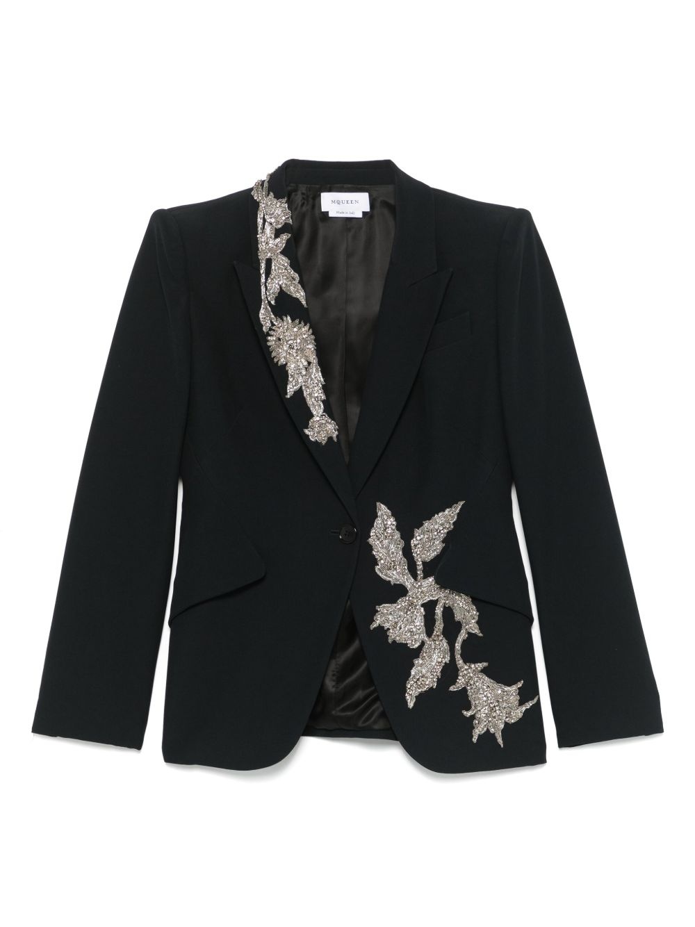 embellished padded-shoulders blazer Highlights - Black - Front button fastening - Chest welt pocket - Two side flap pockets Made in Italy Composition Lining: Cupro 100% Outer: Metal 100%, glass 100%, Viscose 52%, Acetate 48% Washing instructions Dry Clean Only