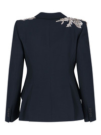 embellished single-breasted blazer Highlights - Black - Single-breasted closure - Crystal embellishment - Shoulder detail - Floral motif - Fitted silhouette Made in Italy Composition Cupro 100%, Viscose 52%, Acetate 48% Washing instructions Read Manufacturer Guidelines