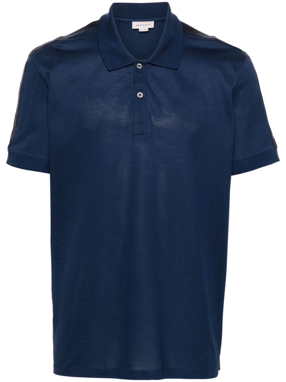 logo-tape polo shirt Highlights - Blue - Cotton - Pique weave - Logo-tape detailing - Front button placket - Polo collar - Short sleeves with ribbed cuffs - Short side slits - Straight hem Imported Composition Cotton 100%, Polyester 100% SIZE & FIT Model measurements Height 6 ft 2 in(1.87 m) Bust/Chest 38.18 in(97 cm) Hips 36.61 in(93 cm) Waist 29.13 in(74 cm) FittingInformation Designed for a regular fit, this polo shirt offers a comfortable loose fit throughout the body Made from a midweight non-stretch fabric, this piece offers minimal elasticity when worn