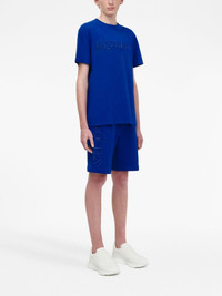 embroidered logo track shorts Made in Italy from soft cotton, these track shorts from Alexander McQueen are rendered in a bold cobalt blue hue. The pair sits at the waist with an elasticated band whilst boasting a tonal embroidered logo at the side. Highlights - Cobalt blue - Cotton - Mid-rise - Elasticated waistband - Embroidered logo to the side - Knee-length Made in Italy Composition Cotton 100%