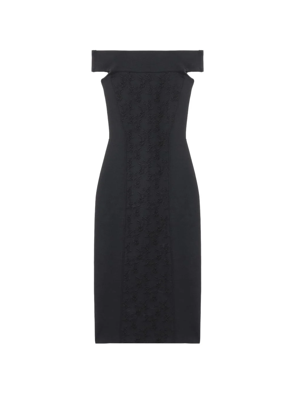 floral-jacquard pencil midi dress Highlights - Black - Floral jacquard - Off-shoulder style - Straight hem - Fitted design Made in Italy Composition Viscose 100%, Polyamide 100% Washing instructions Dry Clean Only