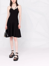 fluted mini dress In line with Alexander McQueen's dramatic aesthetic, this fluted mini dress belongs to the latest SS22 collection. With a fitted engineered corset, this dress features a strappy detail on the collarbone and is finished with a floating flared hem. Highlights - Black - Sweetheart neck - Corset style - Sleeveless - Side zip fastening - Thin shoulder straps - Flared skirt - Knee-length Made in Italy Composition Viscose 71%, Polyester 15%, Polyamide 13%, Spandex/Elastane 1% SIZE & FIT Model measurements Height 5 ft 12 in(1.82 m) Bust/Chest 34.25 in(87 cm) Hips 37.79 in(96 cm) Waist 25.19 in(64 cm) FittingInformation This piece fits true to size. We recommend you get your regular size Designed for a close fit at the bust, waist and hips Made with a mid-weight stretch fabric Washing instructions Dry Clean Only