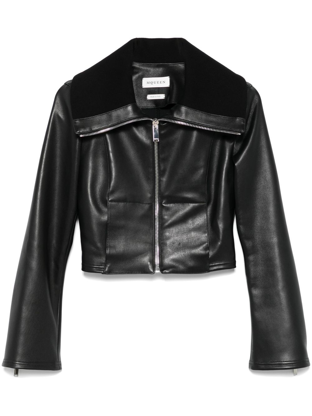 folded-collar leather jacket