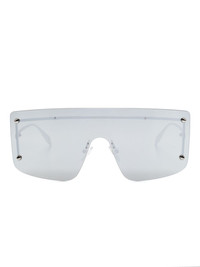 Spike Studs Mask sunglasses Highlights - Silver-tone - Metal - Frameless design - Oversize shield frame - Mirrored lenses - Uv protection - Spike stud detailing - Nose pads - Logo-engraved arm - Straight arms - Curved tips - These glasses come with a protective case. Made in Italy Composition Metal 100%, Acrylic 100% SIZE & FIT Measurement Arm Length 5.11 in(13 cm) Bridge Width 0.9 in(2.3 cm) Lens Diameter 2.95 in(7.5 cm) Total Width 6.14 in(15.6 cm)