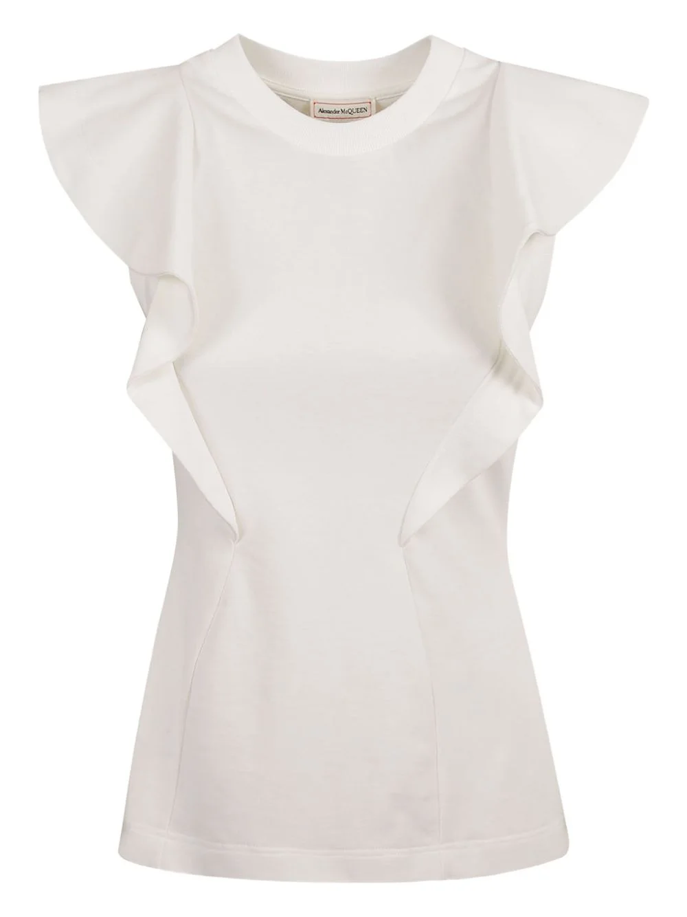 frill-embellished tank top Highlights - White - Organic cotton - Ruffled detailing - Crew neck - Sleeveless - Straight hem Made in Italy Composition Organic Cotton 100% Washing instructions Read Manufacturer Guidelines