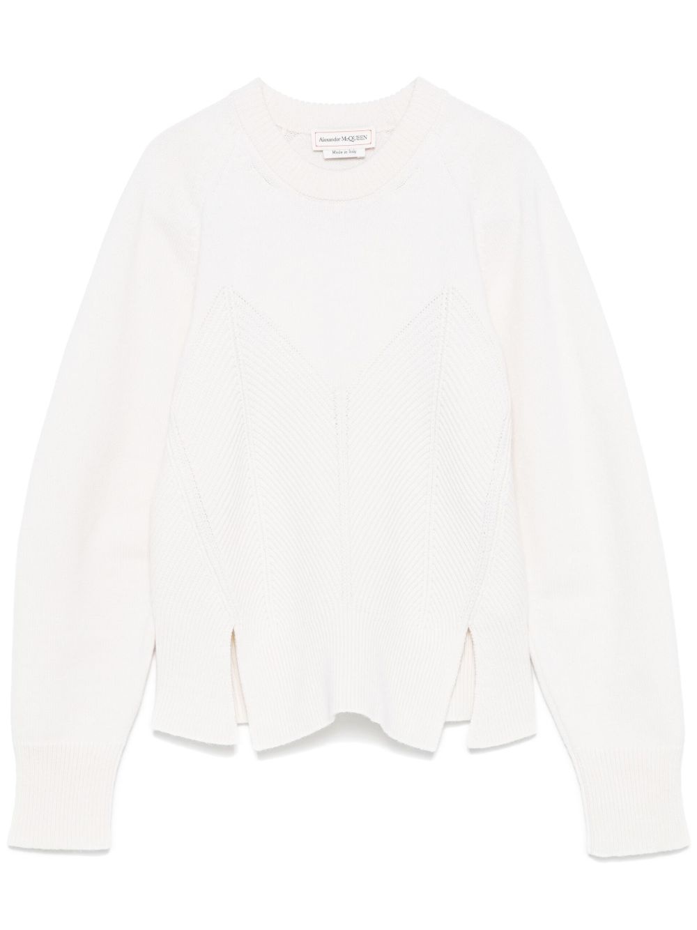 geometric-pattern sweater Highlights - Cream white - Wool-cashmere blend - Knitted construction - Geometric pattern - Crew neck - Extra-long raglan sleeves - Ribbed cuffs - Side slits - Unlined - Asymmetric hem Made in Italy Composition Wool 90%, Cashmere 10% SIZE & FIT Model measurements Height 5 ft 11 in(1.8 m) Bust/Chest 32.67 in(83 cm) Hips 35.82 in(91 cm) Waist 25.98 in(66 cm) FittingInformation Designed for a slim fit that sits just away from the body offering a close yet comfortable fit Made with a midweight knit, this piece offers some stretch