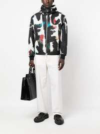 Graffiti-print hooded windbreaker black/multicolour signature Graffiti print drawstring hood high neck front two-way zip fastening long sleeves ribbed cuffs two side slit pockets Made in Italy Composition Outer: Silk 47%, Cotton 36%, Polyamide 14%, Spandex/Elastane 3% Lining: Polyester 100% SIZE & FIT Model measurements Height 6 ft 2 in(1.87 m) Bust/Chest 36.41 in(92.5 cm) Hips 37 in(94 cm) Waist 29.52 in(75 cm) Measurement CHEST 49.6 in(126 cm) SLEEVE LENGTH 35.23 in(89.5 cm) LENGTH 26.37 in(67 cm) WAIST 47.24 in(120 cm) FittingInformation This piece fits true to size. We recommend you get your regular size Cut for a loose fit Made with a mid-weight non-stretch fabric Washing instructions Dry Clean Only
