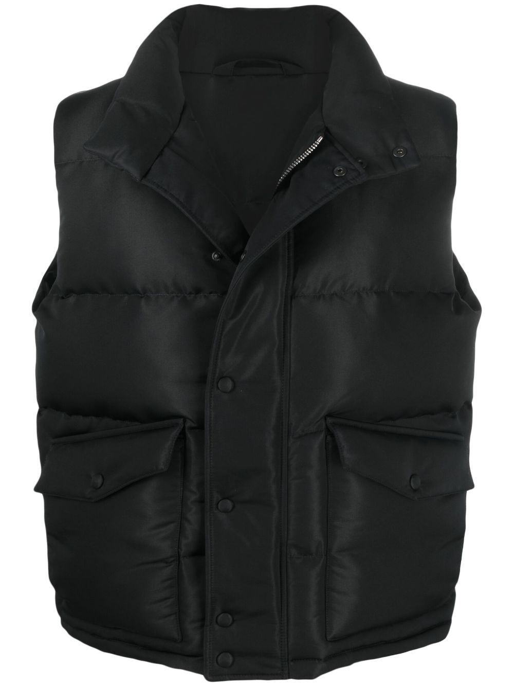 graffiti-print padded gilet Designed for a cosy extra layer, this sleeveless gilet from Alexander McQueen has a warm, padded construction. Its black style comes with a signature graffiti logo embellishment emblazoned onto the rear. Highlights - Black - Logo print to the rear - Padded design - High neck - Front zip fastening - Two side button-fastening pockets - Sleeveless - Straight hem Made in Italy Composition Outer: Polyester 100% Lining: Polyester 100% SIZE & FIT FittingInformation This piece fits true to size. We recommend you get your regular size Cut for a loose fit Made with a mid-weight non-stretch fabric Washing instructions Dry Clean Only