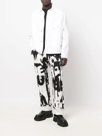 Graffiti-print straight-leg jeans white/black cotton two-tone design signature Graffiti print logo patch to the rear straight leg mid-rise multiple patch pockets concealed fly and button fastening belt loops Made in Italy Composition Outer: CALFSKIN 100%, Cotton 100% Lining: Polyester 65%, Cotton 35% SIZE & FIT Model measurements Height 6 ft 0 in(1.84 m) Bust/Chest 35.82 in(91 cm) Hips 37 in(94 cm) Waist 28.34 in(72 cm) FittingInformation This piece fits true to size. We recommend you get your regular size Regular fit Made with a mid-weight non-stretch fabric Washing instructions Machine Wash