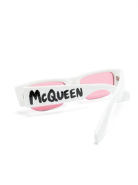 Women's McQueen Graffiti Slashed Sunglasses in White