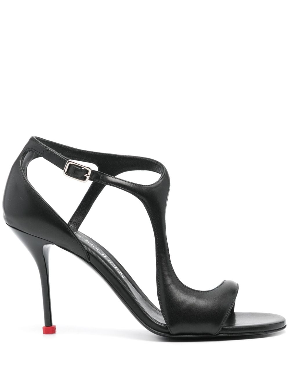 Harness 90mm leather sandals Highlights - Black - Calf leather - Round open toe - T-bar strap - Branded leather insole - 90mm high stiletto heel - Contrasting pin heel - Rubber sole - Silver-tone hardware - Buckle-fastening ankle strap Made in Italy Composition Lining: Calf Leather 100% Outer: Calf Leather 100% Sole: Rubber 100%, Calf Leather 100% SIZE & FIT Measurement HEEL 3.54 in(9 cm)