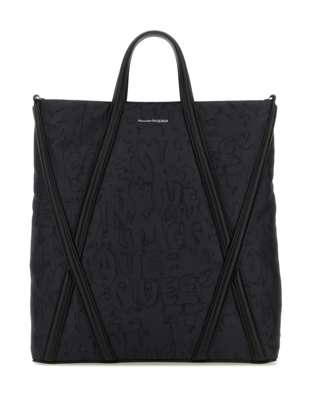 Harness Graffiti-print tote bag Highlights - Black - Leather - Tonal design - Graffiti print - Logo stamp to the front - Strap detailing - Magnetic fastening - Two flat top handles - Adjustable detachable shoulder strap - Flat base - Full lining - Internal logo stamp - Internal card slot - Internal zip-fastening pocket - Main compartment - Silver-tone hardware - This piece comes complete with a protective dust bag. Made in Italy Composition Lining: Nylon 100% Outer: Calf Leather 100%, Nylon 100% SIZE & FIT Measurement DEPTH 4.33 in(11 cm) HEIGHT 15.74 in(40 cm) WIDTH 13.77 in(35 cm)