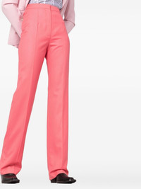 high-waisted tailored wool trousers Impeccable tailoring is at the heart of Alexander McQueen. Crafted in coral-pink wool, these tailored trousers sit high at the waist and have a straight-cut leg, accentuated by the pressed creases for an elongating effect. Made in Italy Composition Lining: Cupro 100% Outer: Wool 100% SIZE & FIT FittingInformation This piece fits true to size. We recommend you get your regular size Designed to be fitted at the waist and hips, loose over the leg Made with a mid-weight non-stretch fabric Washing instructions Dry Clean Only
