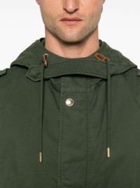 hooded jacket Highlights - Forest green - Cotton - Gabardine weave - Concealed front zip fastening - Drawstring hood - Throat latch - Epaulettes - Long sleeves with press-stud fastening cuffs - Two side flap pockets - Drawstring hem Made in Italy Composition Cotton 100% SIZE & FIT Model measurements Height 6 ft 2 in(1.87 m) Bust/Chest 37.79 in(96 cm) Hips 37.79 in(96 cm) Waist 30.31 in(77 cm) FittingInformation Designed to be unstructured, offering a loose fit throughout The internal drawstring at the hem allows for fitted preferences Made from a midweight non-stretch fabric Washing instructions Dry Clean Only