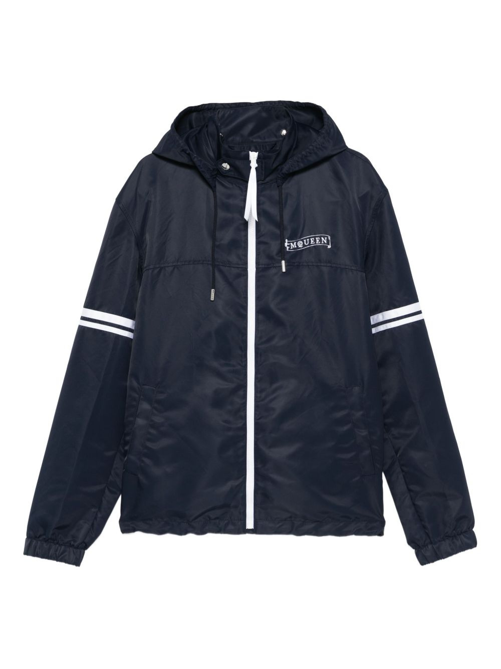 hooded stripe-detail jacket Highlights - Navy blue - Hooded neckline - Zip front fastening - Long sleeves - Elasticated cuffs Made in Italy Composition Polyamide 100% SIZE & FIT Model measurements Height 6 ft 1 in(1.85 m) Bust/Chest 38.58 in(98 cm) Hips 37 in(94 cm) Waist 30.31 in(77 cm) Washing instructions Dry Clean Only
