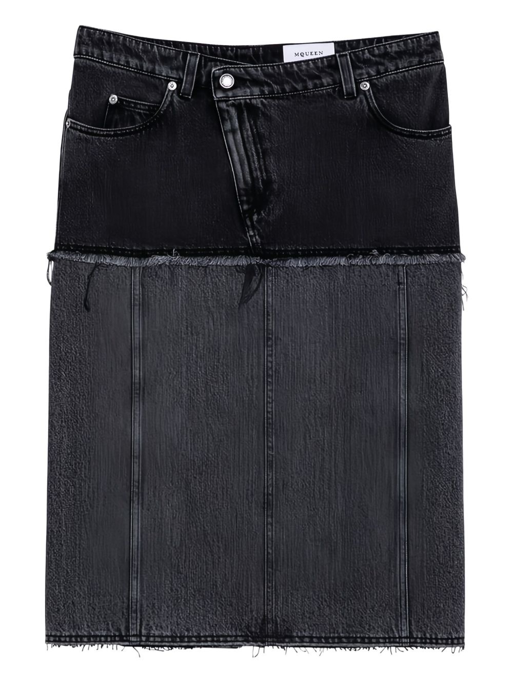 Hybrid midi skirt Highlights - Black - Concealed fly and button fastening - Belt loops - Classic five pockets - Logo patch to the rear Made in Italy Composition Lining: Polyester 65%, Cotton 35% Outer: Cotton 100%, Leather 100% Washing instructions Read Manufacturer Guidelines