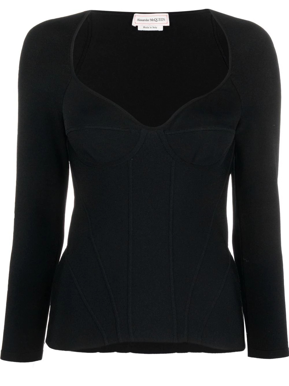 inserted-bra detail top black stretch-design built-in fabric bra long sleeves straight hem Made in Italy Composition Viscose 71%, Polyester 15%, Polyamide 13%, Spandex/Elastane 1% SIZE & FIT Model measurements Height 5 ft 10 in(1.79 m) Bust/Chest 33.07 in(84 cm) Hips 35.82 in(91 cm) Waist 24.01 in(61 cm) FittingInformation This piece fits true to size. We recommend you get your regular size Cut for a close fit Made with a mid-weight stretch fabric Washing instructions Dry Clean Only