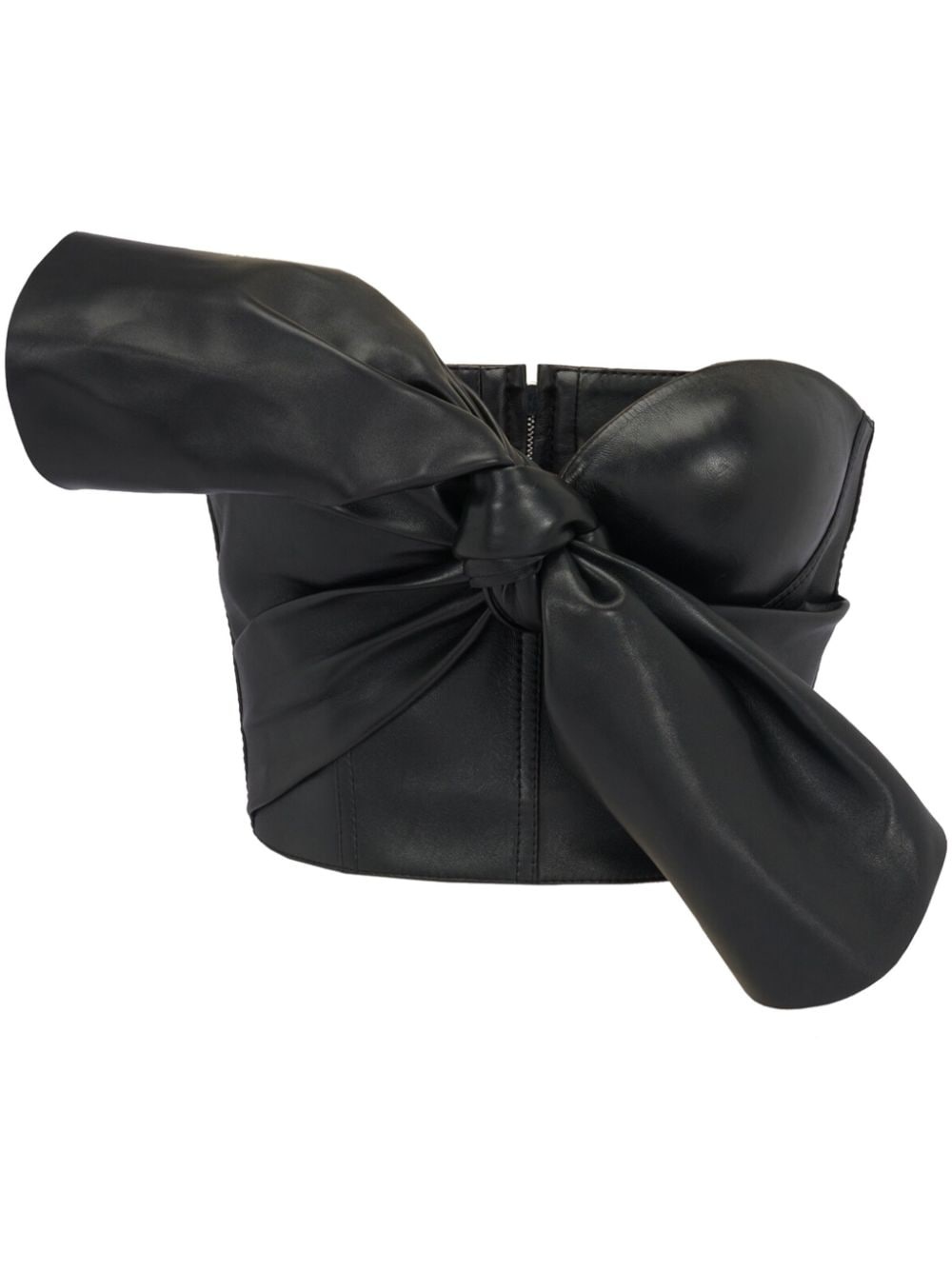 knotted-bow leather corset top Highlights - Black - Lambskin - Oversize bow detail - Strapless - Concealed rear zip fastening - Cropped - Straight hem Made in Italy Composition Lambskin 100%