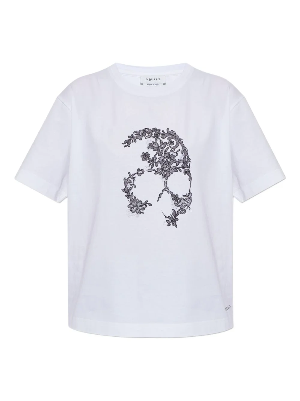 lace-skull T-shirt Highlights - White - Lace detailing - Skull motif - Round neck - Short sleeves Made in Italy Composition Outer: Cotton 100% Washing instructions Read Manufacturer Guidelines
