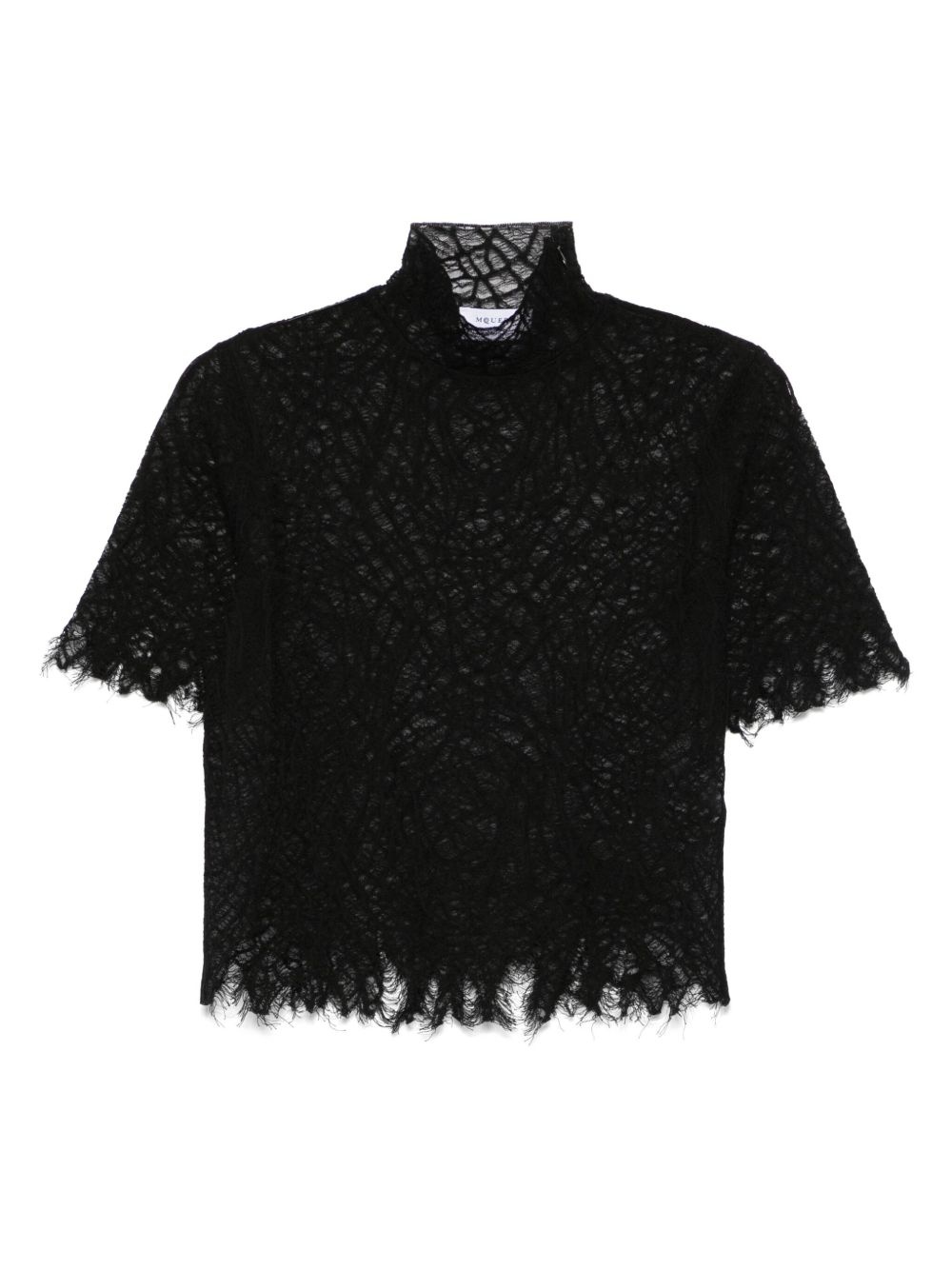 lace T-shirt Highlights - Black - Shoulder zip fastening - Frayed edge - Semi-sheer construction - High neck Made in Italy Composition Cotton 56%, Silk 44% SIZE & FIT Model measurements Height 5 ft 10 in(1.78 m) Bust/Chest 33.46 in(85 cm) Hips 36.22 in(92 cm) Waist 23.22 in(59 cm) FittingInformation Designed for a slim fit that sits just away from the body offering a close yet comfortable fit Made from a lightweight non-stretch fabric, this piece offers minimal elasticity when worn