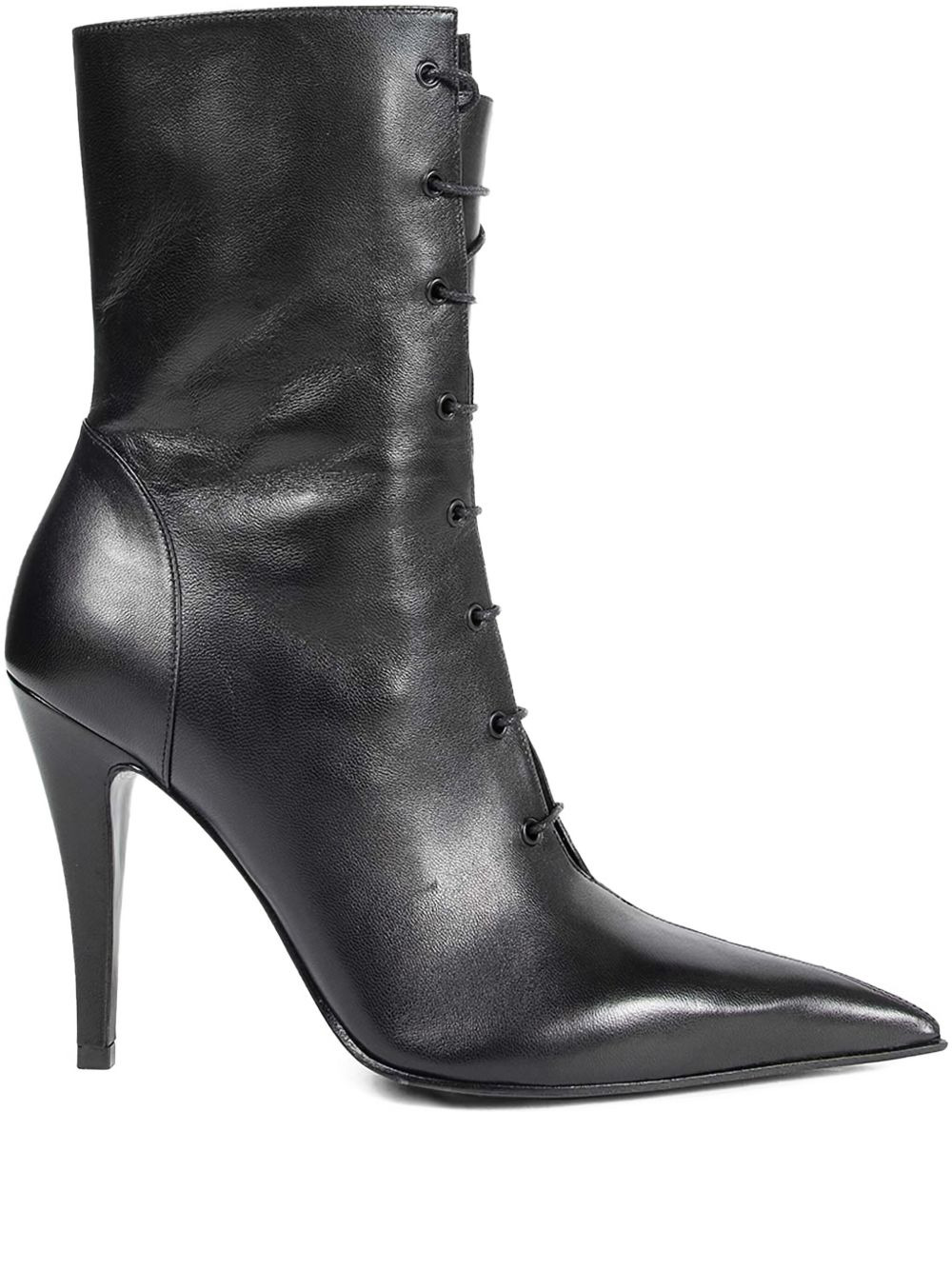 lace-up stiletto leather ankle boots Highlights - Black - Leather - Lace-up fastening - Stiletto heel - Pointed toe - Zip fastening Made in Italy Composition Outer: Lambskin 100% Lining: Calf Leather 100% Sole: Calf Leather 100% SIZE & FIT Measurement HEEL 3.93 in(10 cm)
