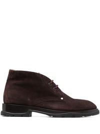 lace-up suede boots Alexander McQueen updates the classic ankle boots. In a nod to the house's modern spirit, this iteration combines a leather sole with a branded rubber ridged sole. Highlights - Brown - Calf suede - Logo at the sole - Round toe - Front lace-up fastening - Ankle-length - Branded heel counter - Ridged rubber sole Made in Italy Composition Lining: Calf Leather 100% Outer: Calf Suede 100% Sole: Rubber 100% SIZE & FIT Measurement HEEL 1.37 in(3.5 cm) HEIGHT 4.13 in(10.5 cm) Sole height 0.78 in(2 cm)