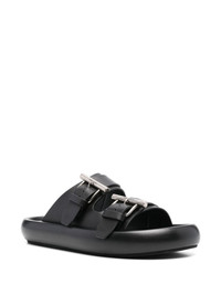 leather sandals Highlights - Black - Double buckle fastening - Logo-engraved buckle - Branded insole - Flat sole Made in Italy Composition Sole: Rubber 100% Outer: Calf Leather 100% Lining: Calf Leather 100%
